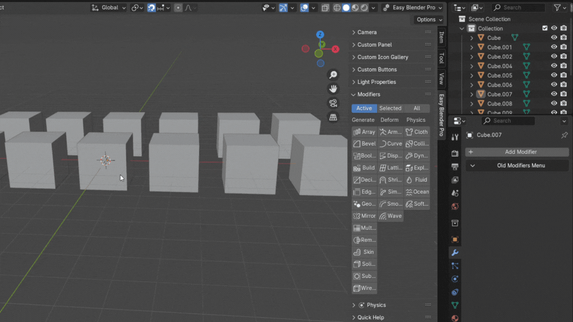 Add Modifiers Easily, Choose your favorite Modifiers, Add Booleans with just two clicks and Add Physics Simulations with one click.
